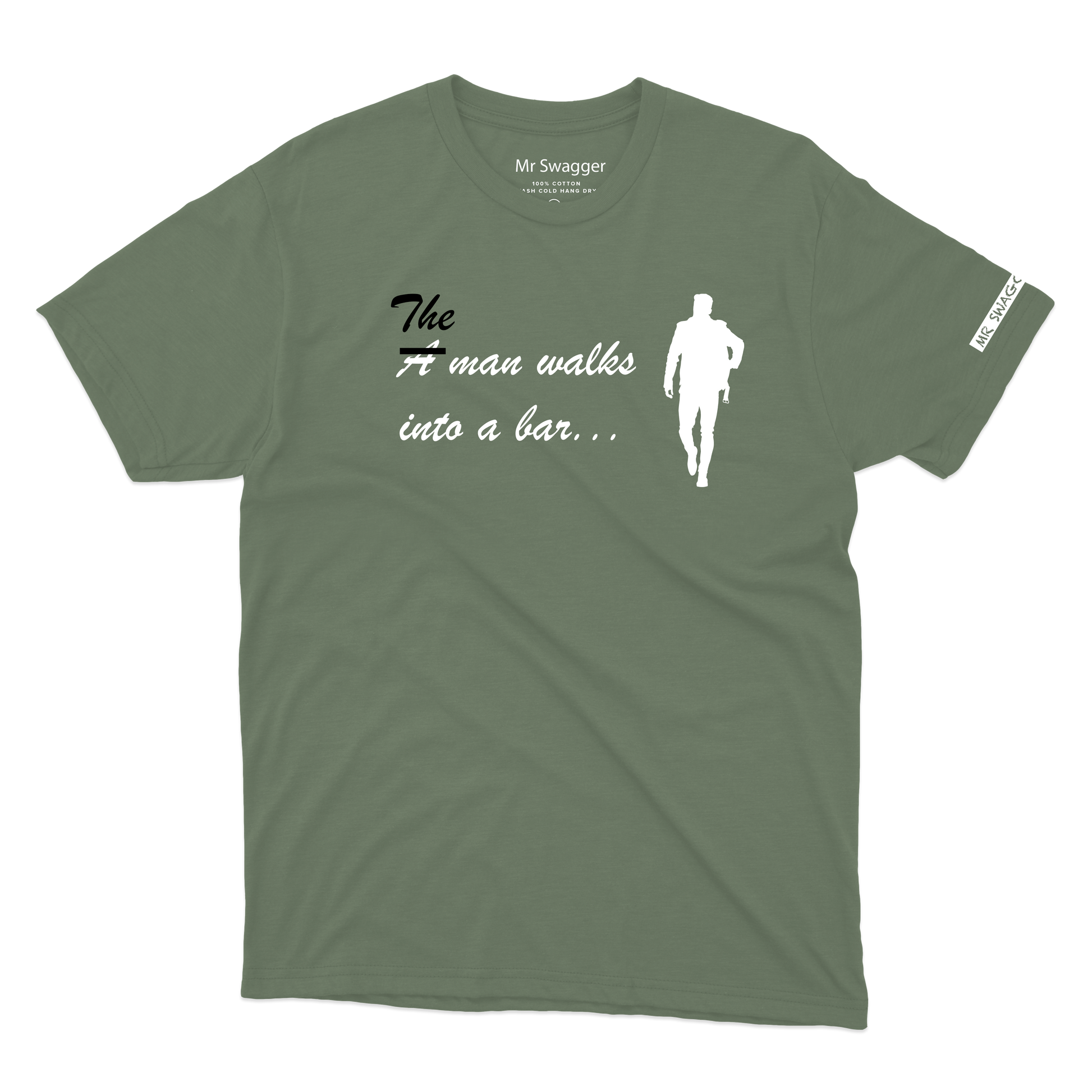 A man walks into a bar Tee Olive Green